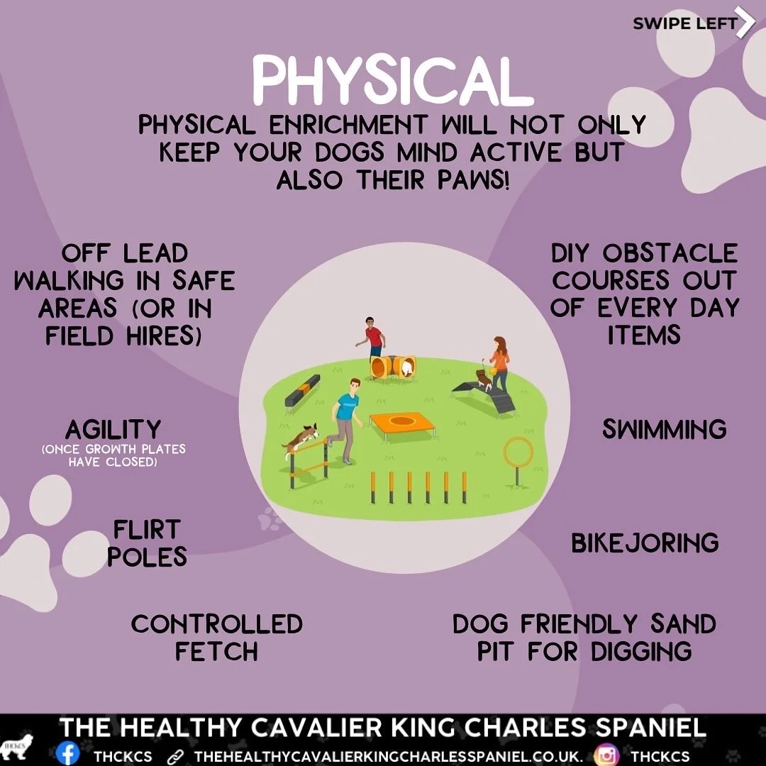 Physical Enrichment: Keeping your dog physically active is crucial for their health and happiness. Activities like agility training, fetch games, and long walks not only provide exercise but also strengthen the bond between you and your furry friend.