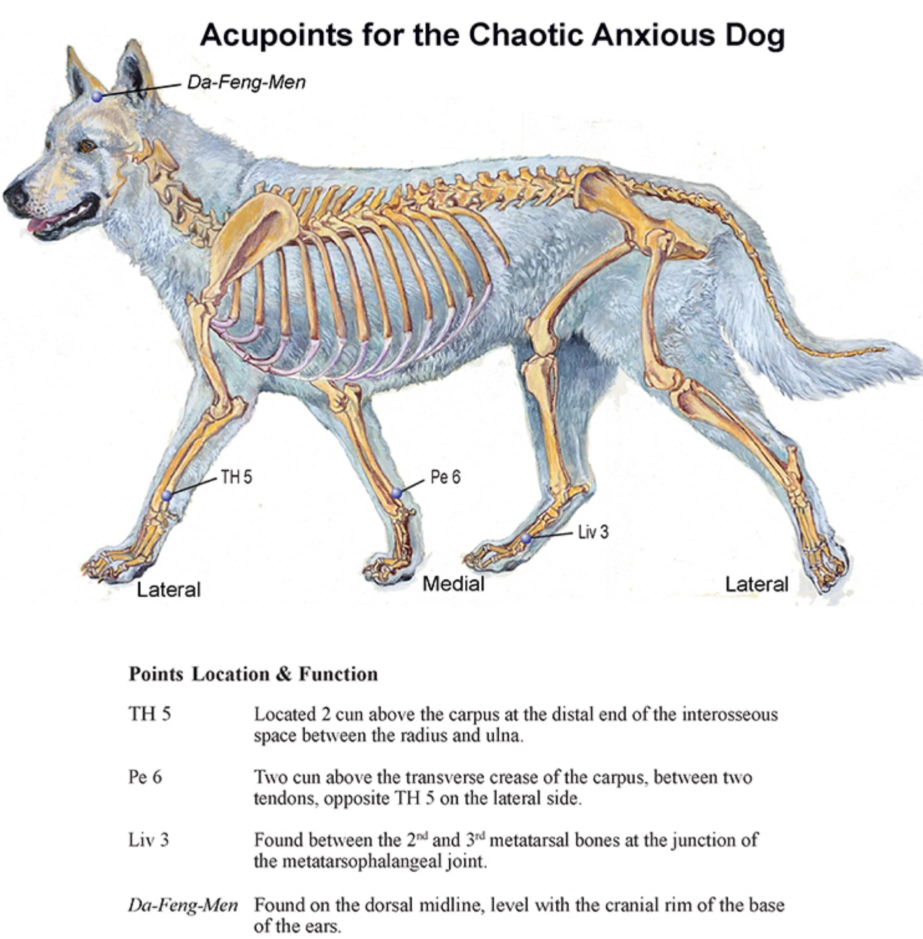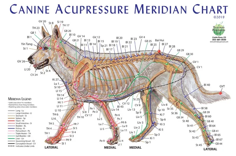 • The Ojai School of Massage provides a helpful canine acupuncture point chart for students and dog guardians alike.